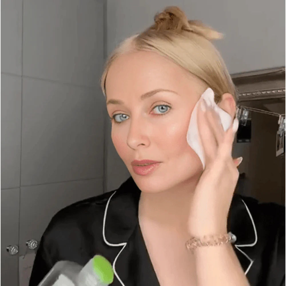 Limpia y seca tu rostro suavemente antes de usar la máscara. Asegúrate de que no queden restos de maquillaje o crema para una mejor absorción del tratamiento.