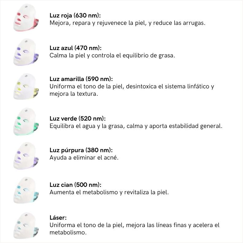 Modos de luz: 7 colores (tratamiento personalizado)